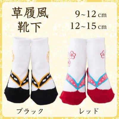ベビー キッズ 靴下 和風 着物 袴 フォーマル【草履柄ソックス 黒 赤】