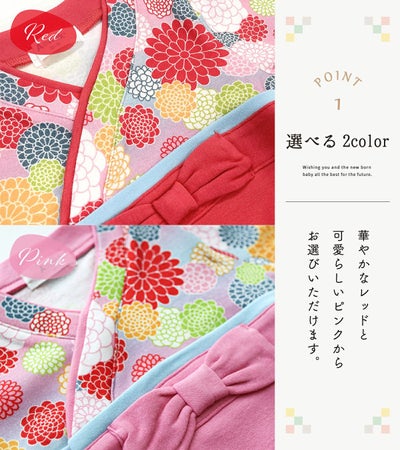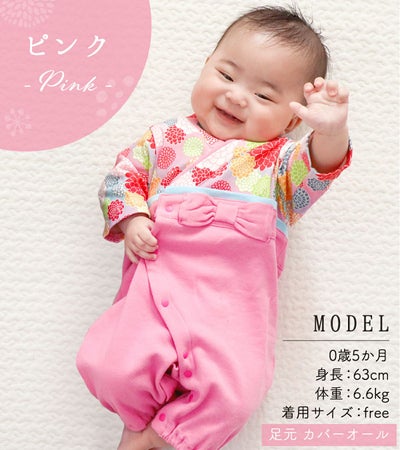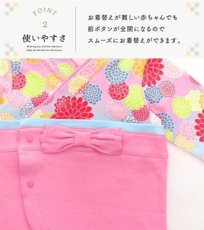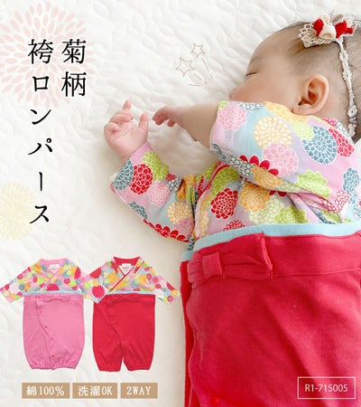 ロンパース 袴 お食い初め 女の子 カバーオール ベビー服 菊柄女児袴兼用