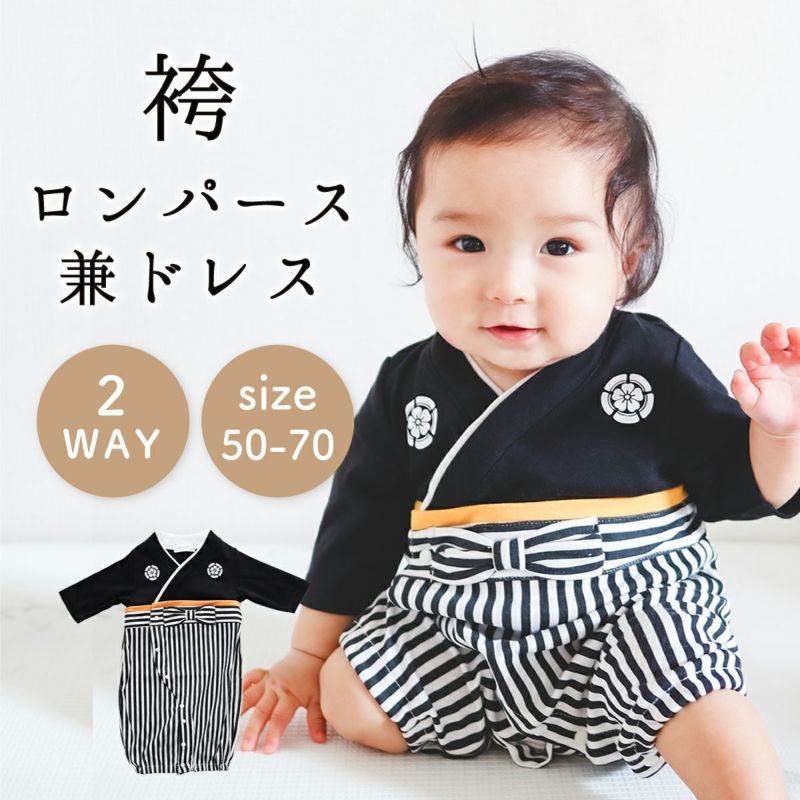 ロンパース 袴 お食い初め 男の子 カバーオール ベビー服 紋付袴 男児袴兼用ドレス