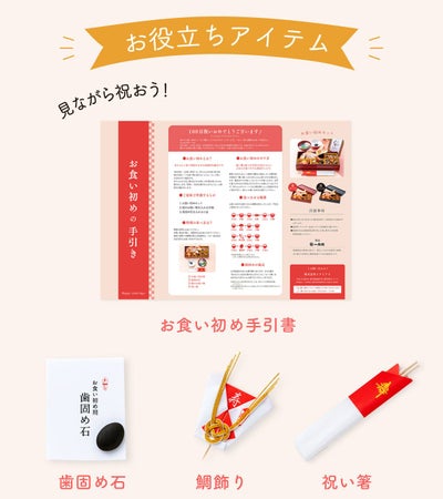 ■セット内容:焼き鯛・焼帆立・昆布巻・梅干し・紅白ナマス・祝い海老・真蛸酢漬け・赤飯・煮物・お吸い物(蛤)・歯固め石・祝い箸