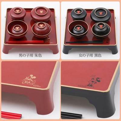 送料無料 お食い初め 食器セット【ディズニー 初膳 ミッキー朱色(男の子用)・ミニー黒色(女の子用)紅白麺付 13951-HIU】選べるラッピング ランキング入賞 日本製