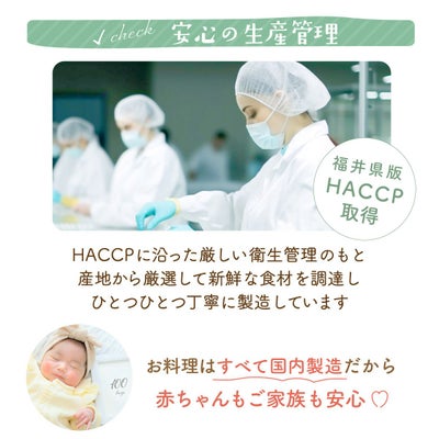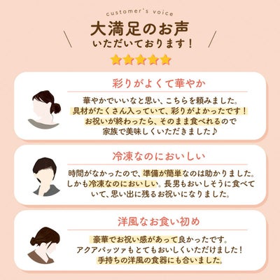 ※食品は手作りのため、同じ食品でも、色味が異なる場合が見られます。鯛の大きさ・色については、個体差があります。予めご了承ください。