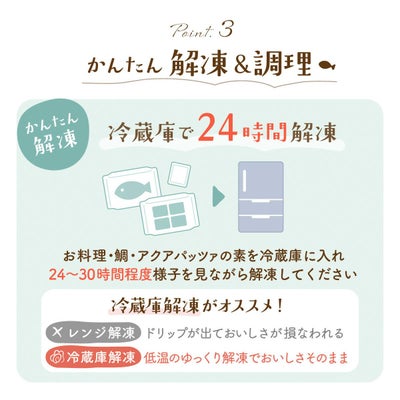 解凍は冷蔵庫で24時間?30時間程かかります(季節や冷蔵庫の状況などにより異なります)