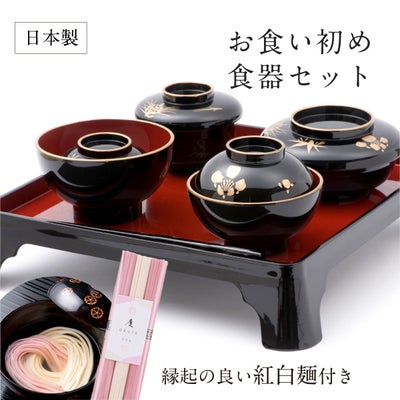 お食い初め 食器セット【初膳 紅白麺付】 日本製