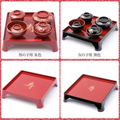 送料無料 お食い初め 食器セット【初膳 朱色(男の子用)・黒色(女の子用)紅白麺付 15890-HIU】選べるラッピング ランキング入賞 日本製