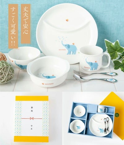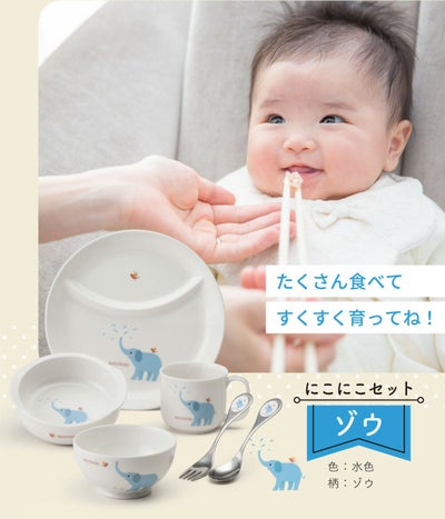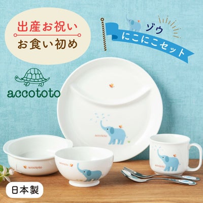 出産お祝い ベビー食器セット 百日祝い 孫 ベビーギフト 男の子 女の子 出産祝い 出産お祝い お食い初め ベビー食器 プレゼント ギフト 陶器 アッコトト にこにこセット ゾウ ニッコー NIKKO