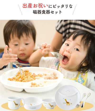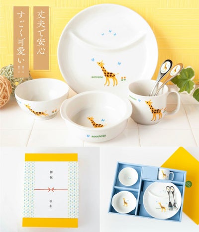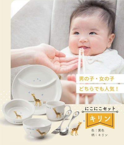 出産お祝い ベビー食器セット 百日祝い 孫 ベビーギフト 男の子 女の子 出産祝い 出産お祝い お食い初め ベビー食器 プレゼント ギフト 陶器 アッコトト にこにこセット キリン ニッコー NIKKO