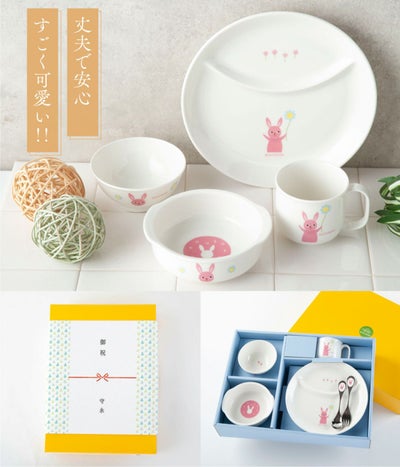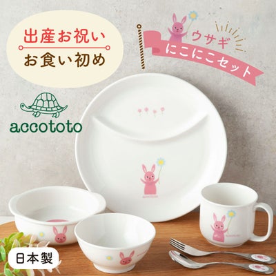 出産お祝い ベビー食器セット 百日祝い 孫 ベビーギフト 男の子 女の子 出産祝い 出産お祝い お食い初め ベビー食器 プレゼント ギフト 陶器 アッコトト にこにこセット ウサギ ニッコー NIKKO