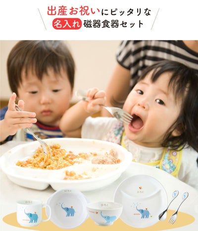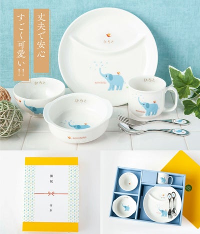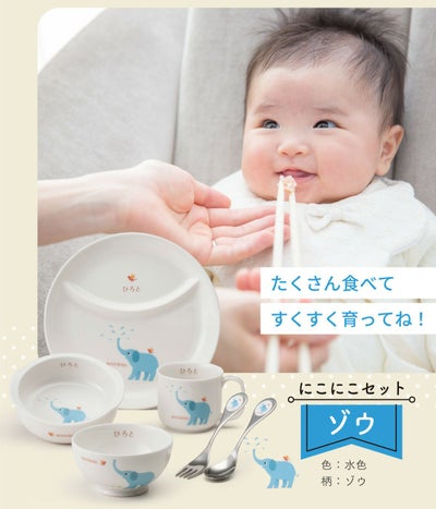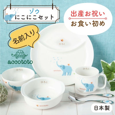 出産お祝い ベビー食器セット 百日祝い 孫 ベビーギフト 男の子 女の子 名入れ 出産祝い 出産お祝い お食い初め ベビー食器 プレゼント ギフト 陶器 アッコトト にこにこセット ゾウ ニッコー NIKKO