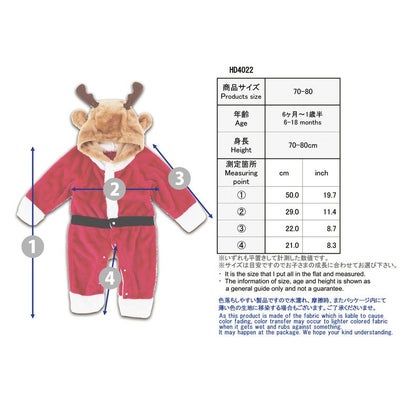 もこもこ 着ぐるみ クリスマス コスチューム【ベビーサンタトナカイ カバーオール HD4022】男女共用 帽子付き