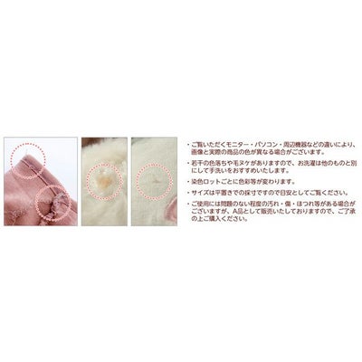 ・若干の色落ちや毛ヌケがありますので、お洗濯は他のものと別にして手洗いをおすすめいたします。