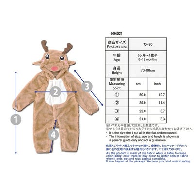 もこもこ 着ぐるみ クリスマス コスチューム【ベビートナカイ カバーオール HD4021】男女共用 帽子付き