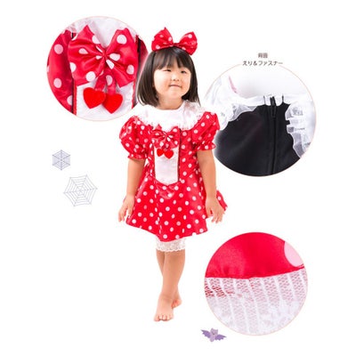 子供 仮装 ハロウィン ドレス 衣装 キッズ KIDS ドット柄 ドレス カチューシャ付き ディズニー プリンセス お姫様 女児 女子 女の子 子供用 ワンピース 発表会 学芸会 服 レッド 赤色/60cm 70 80 90 100 110 120 130サイズ