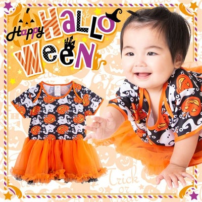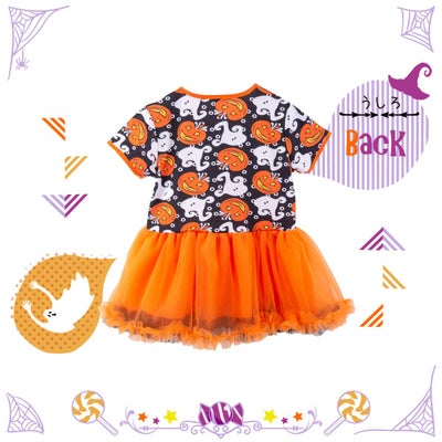 製品特徴:ジャックランタンの柄付きカバーオールに、ふわふわスカート付き。