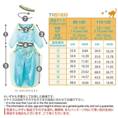 ※上着裾後ろ・手首・ズボン腰後ろ・足首・カチューシャ後ろはゴム仕様