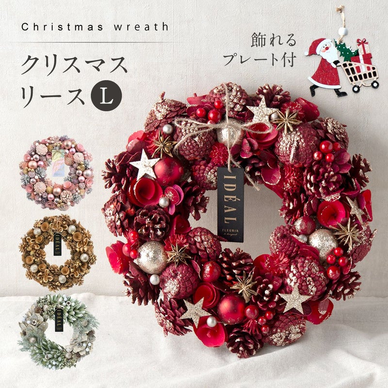 クリスマス リース Lサイズ 30cm以上 レッド ピンク ゴールド グリーン ナチュラル おしゃれ Xmas 玄関 受付 インテリア ディスプレイ プレゼント 造花 木の実 冬 雑貨 新築祝い 開店祝い ギフトボックス入り