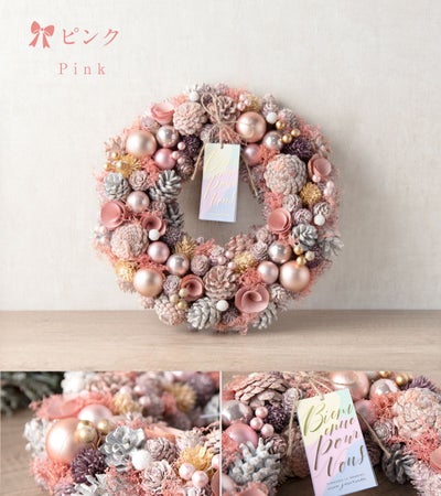 ・ピンク…・ピンクにこだわったスイートなクリスマスリースです。砂糖菓子のような可愛らしさでお部屋をスイートな雰囲気にしてくれます。