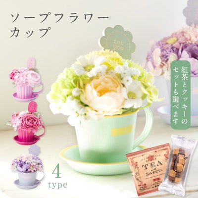 プレゼント 花 クッキー りんごの紅茶 セット ホワイトデー 退職 母の日 お返し ソープフラワー 造花 石けん かわいい 専用ボックス入り
