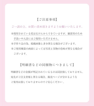 ※使用されている花は石けんからできていますが、観賞用のため手洗いや入浴にはご使用いただけません。