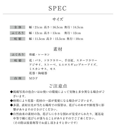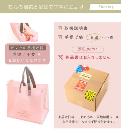 | Q:明細書を入れないでもらいたいのですが… A:商品のお届け先が相手様に直接お送りする際も、ご注文者様にお届けする際も、領収書、明細書、納品書など金額のわかるものはお入れしておりません。どうぞご安心くださいませ。 --- Q:領収書は発行できますか? A:ご購入履歴より、ご自身でプリントアウトしていただくことができます。 --- Q:誕生日など希望の日に届けてもらえますか? A:はい。お届けのご希望日がございましたら、備考欄(ご注文確定前のページ下部)にお書き添えくださいませ。 --- Q:何日までに注文すれば希望の日に間に合いますか? A:当店営業日(平日)は正午までにお支払い確認ができたご注文は当日に発送いたします。多くの地域は、翌日お届け可能でございます。(翌日お届け不可地域:北海道・青森県・福岡県以外の九州・沖縄県・離島) クレジットカードの決済エラーや後払い審査に通らないなど、すぐに発送できない場合もございますので、お早めにご注文いただけますと幸いです。 |