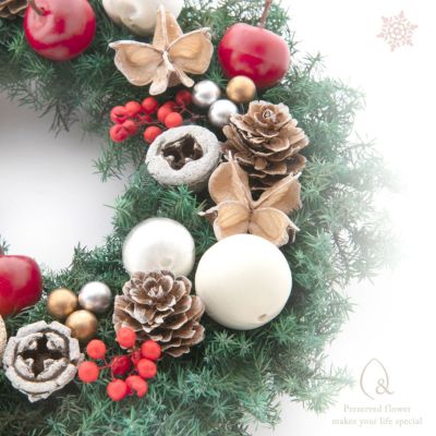 クリスマス クリスマスリース 誕生日 木の実 ギフト プレゼント グリーン ヒムロスギ &preser プリザーブドフラワー【メレットリース】