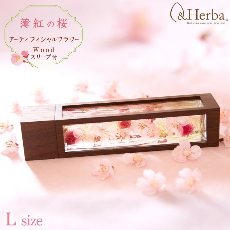&Herba プリザーブドフラワー アー ティフィシャルフラワー ハーバリウム ギフト おしゃれ【ハーバリウム 薄紅(うすべに)の桜 スリーブ L】