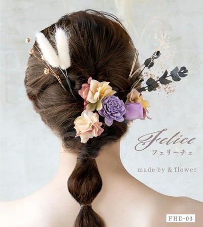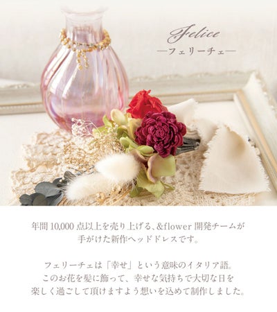 ヘッドドレス 花 髪飾り 成人式 前撮り 結婚式 ヘアアクセ 和装 ドレス ブライダル プリザーブドフラワー ドライフラワー アーティフィシャルフラワー 造花 ウエディング セレモニー 発表会 卒業式 フェリーチェ