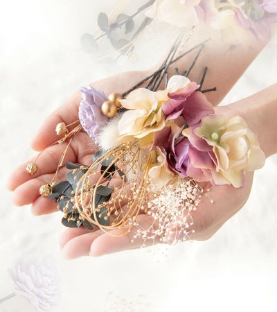 このお花を髪に飾って、幸せな気持ちで大切な日を楽しく過ごして頂けますように…。
