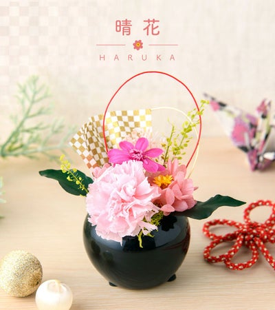 プリザーブドフラワー プレゼント ギフト 誕生日 お祝い お礼 ほんの気持ち 迎春 母の日 カーネーション お洒落 華やか かわいい 和モダン 越前和紙 手のひらサイズ 晴花(はるか)