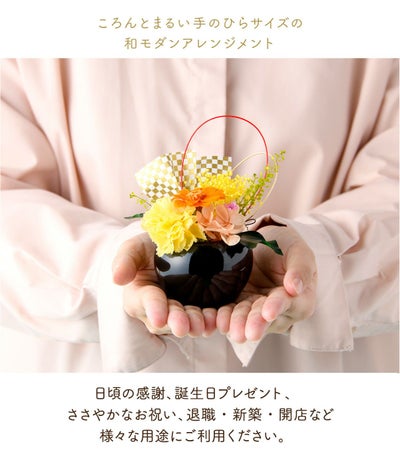ころんと丸い器に人気のカラーでお作りした和モダンアレンジです。