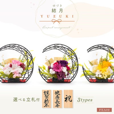 お正月 迎春 謹賀新年 和風アレンジ フラワーアレンジメント ミニ おしゃれ 喜寿 米寿 還暦 ギフト &preser プリザーブドフラワー 立札【結月(ゆづき)】