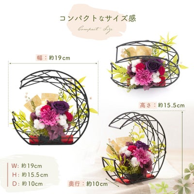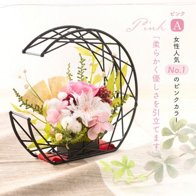 月と花の風流な組合わせに心をくすぐられるコンパクトな和風アレンジ。