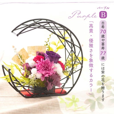 【B】パープル…高貴・優雅さを象徴する色。古希(70歳)や喜寿(77歳)には紫の花が良いとされています。
