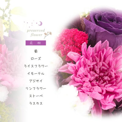 ※一つ一つ丁寧にお作りしておりますが、プリザーブドフラワーの特性上、お手元に届くまでの間に花びらの一部が取れてしまうことがあります。予めご了承くださいませ。