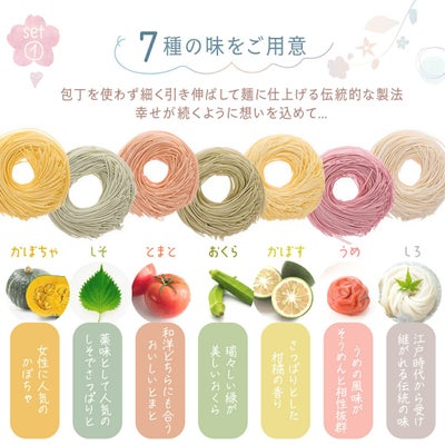 結婚や出産の内祝いに お返しのギフトセット 夫婦円満を願う縁起の良い「まぁるい」七色七味の三輪素麺。おしゃれでかわいい26種類の熨斗。笑顔いっぱい、幸せいっぱいのとっておきの贈り物です。