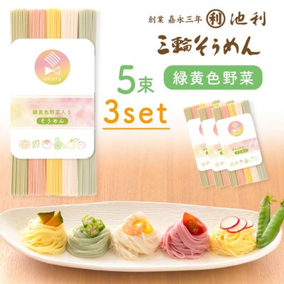 贈答 プレゼント お祝い 誕生 記念 ギフトセット 老舗池利の三輪そうめん 【メール便送料無料】お中元 そうめん おしゃれ 人気 緑黄色野菜入り 七夕 ギフト 50g×5束×3セット