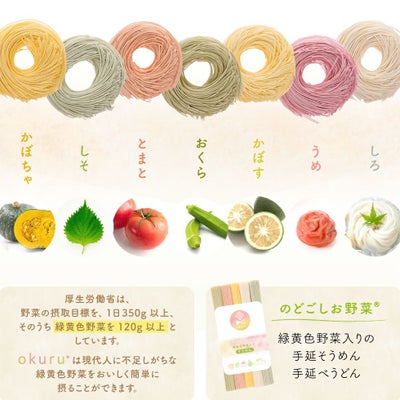 緑黄色野菜入りor紅白麺 手延べそうめん/うどん