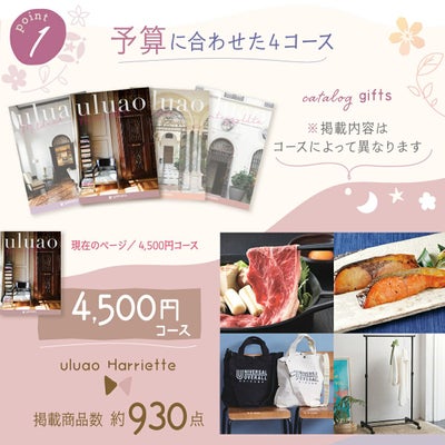 ◆カタログギフト 内祝い 出産内祝い お祝い 結婚内祝い 敬老の日 ギフトカタログ【uluao (ウルアオ) 4,500円コース】ハリエット 冊子 カードタイプ 人気 おしゃれ 贈り物 引き出物 お返し お祝い返し 誕生日 結婚祝い 還暦祝い 出産祝い 退職祝い 記念品 プレゼント 熨斗対応◆ライフスタイルを彩るとっておきのアイテムを厳選して掲載。グルメ・ファッション・インテリア・テーブルウェア・キッチンウェアなどの魅力的な品揃えで選ぶ楽しさを。