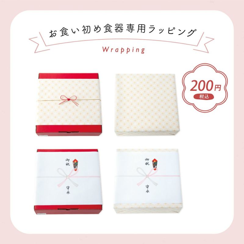 【お食い初め食器 専用ラッピング】 おくいぞめ お喰い初め 初膳 食器 リボンラッピング 包装紙 内熨斗 外のし