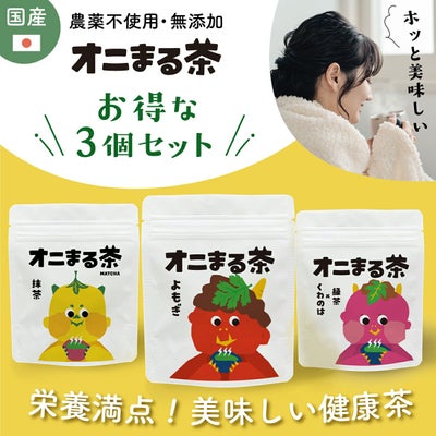 敬老の日 健康茶 ノンカフェイン 国産 デカフェ お茶 粉末 健康飲料 農薬不使用 無添加 健康サポート オニまる茶 緑茶 抹茶 よもぎ茶 桑の葉緑茶 3個セット 高齢者 妊婦 授乳婦 ママセレクト ベビー キッズ ビタミン GABA 葉酸 ギフト 岡山県産