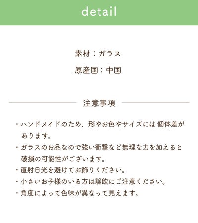 ※ガラス製品なので、強い衝撃など無理な力を加えると破損の可能性がございます。