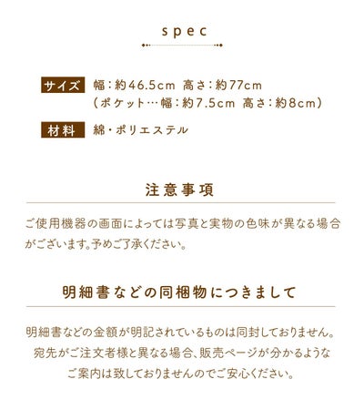 本体:縦77cm, 横46.5cm ポケット部分:7.5cm, 8cm
