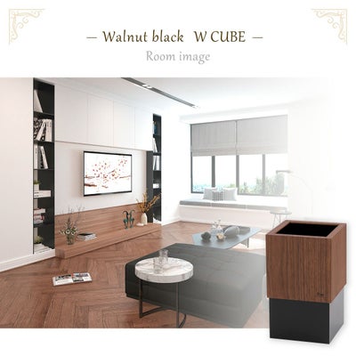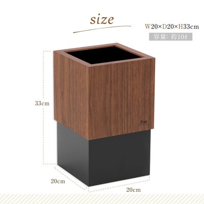 ◆ゴミ箱 日本製 インテリア 角型 おしゃれ ダブルキューブ 袋が見えないカバー付き ダストボックス 容量10リットル 木製 天然素材【W CUBE ウォールナット】ウォールナットブラック◆