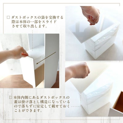 アクリル製のダストボックスは蓋つきで、使用後のマスクはゴミの収集日までの間清潔に保管しておくことができる他、保管していた使用済マスクを捨てた後に洗浄も可能です。
