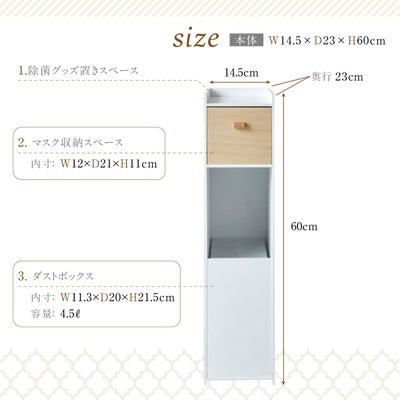 上部の収納スペースはマスクを約50枚(1箱分)収納可能です。