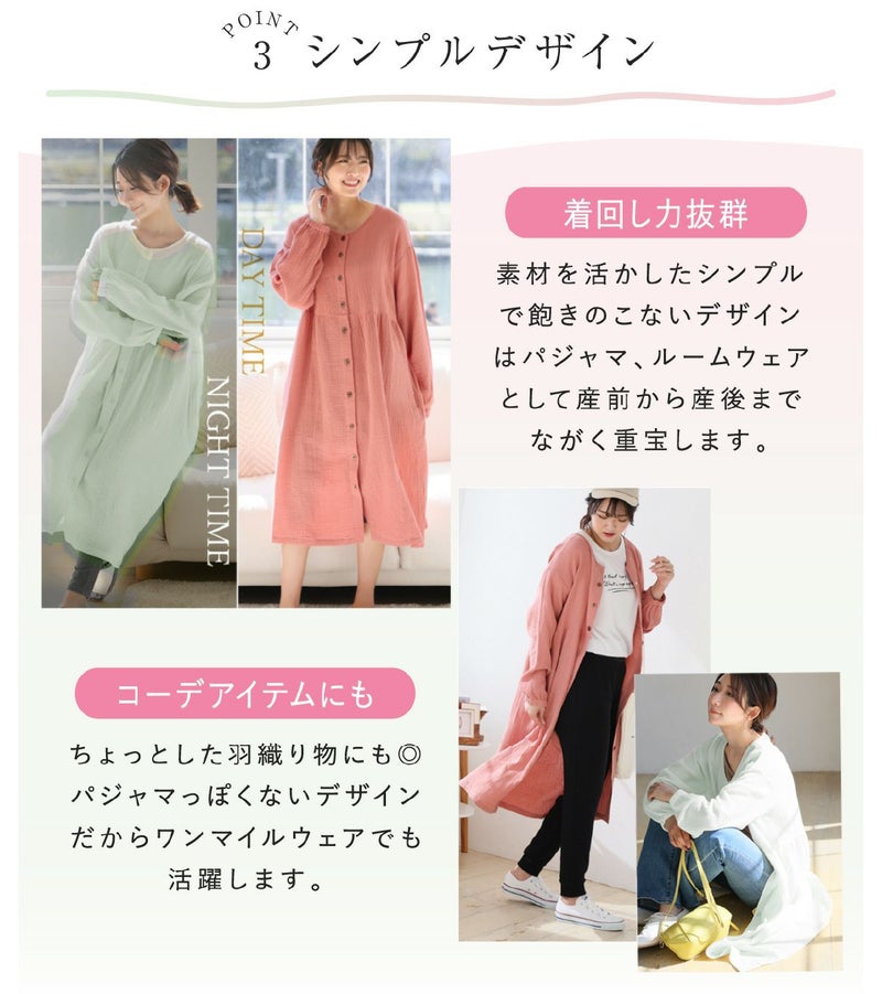 他の画像を見る 販売価格 ¥ 4,950 税込 カートに入れる お気に入りに登録する 肌に優しいダブルガーゼのマタニティパジャマ。ポコポコガーゼの風合いが好印象の長めのトップス。 新発売!! マタニティ パジャマ 長袖 犬印本舗 ぽこぽこガーゼ 丸首パジャマ 出産準備 出産入院 長め丈 授乳 おしゃれ ルームウェア マタニティパジャマ