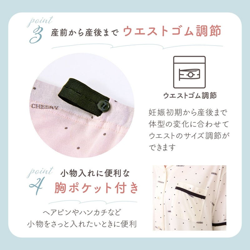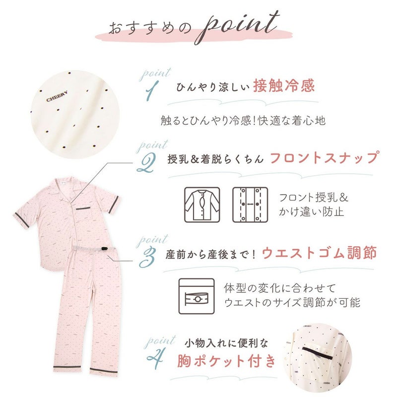 他の画像を見る 販売価格 ¥ 4,490 税込 カートに入れる お気に入りに登録する 着心地が良いマタニティルームウェア。ひんやり涼しい接触冷感。授乳と着脱が楽なフロントスナップ。 【新商品】マタニティ パジャマ 半袖 マタニティウェア 接触冷感 ロゴドット柄パジャマ 春 夏 肌にやさしい 出産準備 産前産後 入院着 授乳可 フロントスナップ ウエスト調整 授乳服 妊婦 上下セット ローズマダム