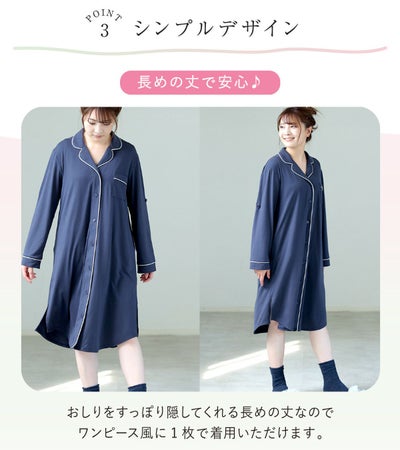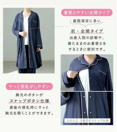出産入院時の診察や寝たままのお着替えをするときに便利です。また、点滴や水仕事など袖をめくれるロールアップ仕様で便利です。
