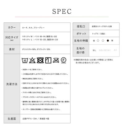 胸元のボタンがスナップ仕様なので産後の授乳時に便利です。