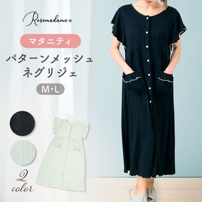 ■マタニティ パジャマ 半袖 マタニティウェア パターンメッシュネグリジェ 春 夏 肌にやさしい 出産準備 産前産後 入院着 授乳可能 フロントスナップ 授乳服 妊婦 ママ 妊娠 ローズマダム レディース おしゃれ ブラック ライトグリーン M L